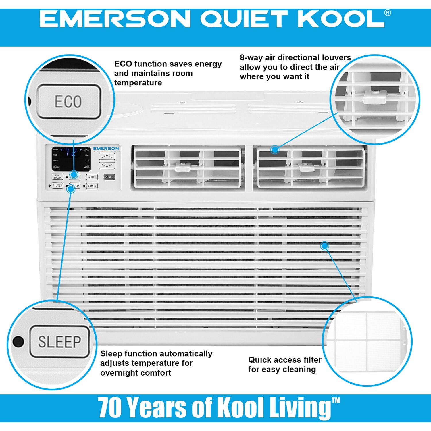 Emerson quiet kool 8,000 btu 115v window air conditioner with remote control, earc8re1, 8000, white. It is for window mounting installation and is good enough for cooling rooms that are between 150 to 250 square feet. ℹ️ download emerson quiet kool ebtc08re1t manuals (total manuals: Energy star rating means it will save you on energy bills with its energy efficiency rating. Emerson quiet kool 350 sq ft window air conditioner 115 volt 8000 btu energy star in the window air conditioners department at lowes com.